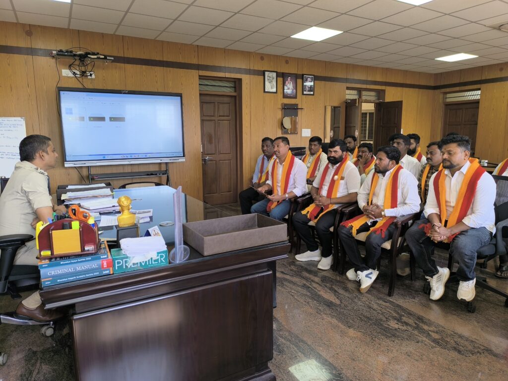 ಬೆಳಗಾವಿ : ನಿರಂತರವಾಗಿ ಗಡಿ ಭಾಗ ಬೆಳಗಾವಿಯಲ್ಲಿ ಪ್ರಚೋದನಕಾರಿ ಹೇಳಿಕೆ ನೀಡುತ್ತ, ನಾಡದ್ರೋಹಿ ಚಟುವಟಿಕೆಗಳಲ್ಲಿ ತೊಡಗಿರುವ ಎಂಇಎಸ್ ನಾಯಕ ಶುಭಂ ಶಳಕೆ ವಿರುದ್ಧ ಗೂಂಡಾ ಕಾಯ್ದೆಯಡಿಯಲ್ಲಿ ಕೇಸು ದಾಖಲಿಸಿ ಗಡಿಪಾರು ಮಾಡಬೇಕು ಎಂದು ಆಗ್ರಹಿಸಿ ಕರವೇ ಕಾರ್ಯಕರ್ತರು ಪೊಲೀಸ್ ಕಮಿಷನರಗೆ ಮನವಿ ಮಾಡಿಕೊಂಡರು.