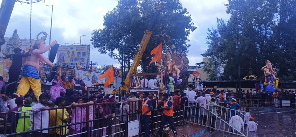 ಬೆಳಗಾವಿ : ನಿನ್ನೆ ಶನಿವಾರ ಸಾಯಂಕಾಲದಿಂದಲೇ ಪ್ರಾರಂಭವಾದ ಸಾರ್ವಜನಿಕ ಮಂಡಳಿಗಳ, ಬ್ರಹತ್ ಮೂರ್ತಿಗಳ ಗಣೇಶ ವಿಸರ್ಜನೆಯು ಮರುದಿನ ಅಂದರೆ ಇಂದು ರವಿವಾರ ಮುಂಜಾನೆ ಹತ್ತು ಗಂಟೆಯಾದರೂ ಕಡಿಮೆಯಾದಂತೆ ಕಾಣುತ್ತಿರಲಿಲ್ಲ, ನಗರದ ಅನೇಕ ದೊಡ್ಡ ದೊಡ್ಡ ಗಣಪತಿಗಳು ಇನ್ನೂ ಸಾಲಾಗಿ ನಿಂತು ವಿಸರ್ಜನೆಗೆ ಅಣಿಯಾಗುತ್ತಿರುವ ದೃಶ್ಯ ಕಂಡುಬಂದಿತ್ತು.