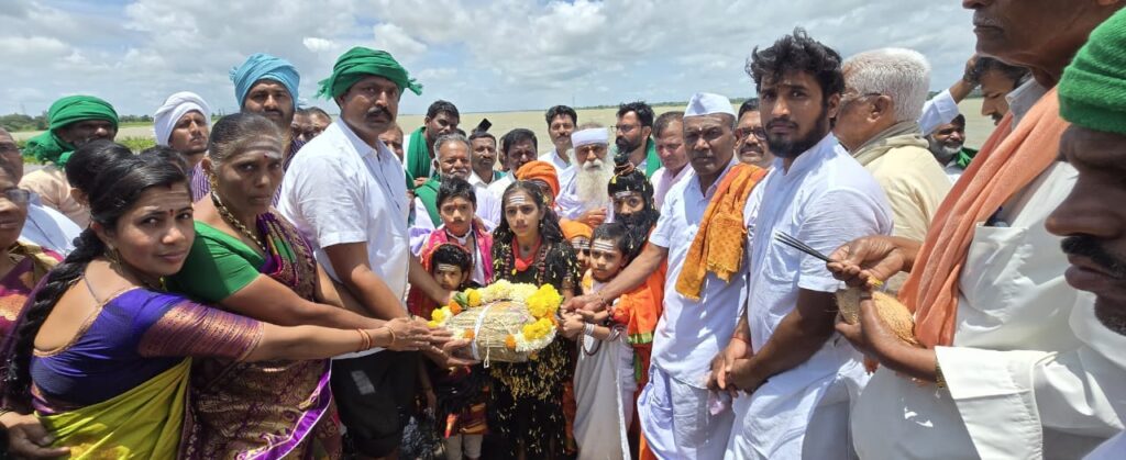 ಜಾಲಿಕೊಪ್ಪ ತಪೋಭೂಮಿ ಆಶ್ರಮದಿಂದ ಭಜನೆ, ಆರತಿ ಎತ್ತಿದ ರೈತ ಮಹಿಳೆಯರು ರೈತ ಸಂಘಟನೆಯ ನೂರಾರು ನಾಯಕರು ವಿಜೃಂಭಣೆಯಿಂದ ನಡೆದುಕೊಂಡು ಸಾಗಿ ನದಿ ದಡದಲ್ಲಿ ಬಾಗಿನ ಅರ್ಪಣೆಯ ಕಂಕೈರ್ಯಗಳನ್ನು ನೆರವೆರಿಸಿದರು.