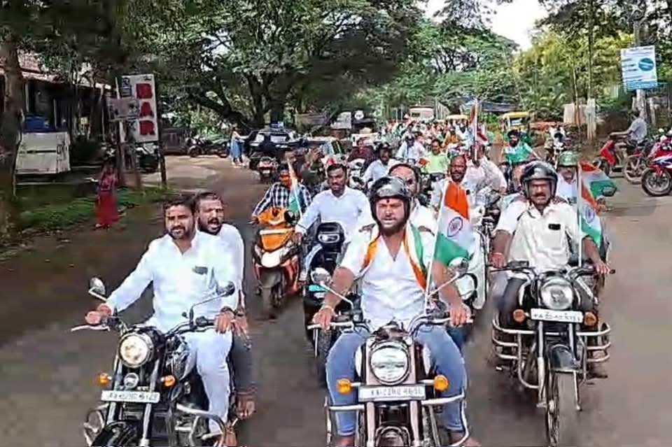 ಬೆಳಗಾವಿ : ಸೋಮವಾರ ದಿನಾಂಕ 11/08/2025 ರಂದು, ಬೆಳಗಾವಿ ಗ್ರಾಮೀಣ ಮಂಡಲ ಅಧ್ಯಕ್ಷರಾದ ಯುವರಾಜ್ ಜಾಧವ್ ಇವರ ನೇತೃತ್ವದಲ್ಲಿ “ಹರ ಘರ್ ತಿರಂಗಾ” ಪ್ರತಿ ಮನೆಗೆ ತ್ರಿವರ್ಣ ಧ್ವಜ ಹಾರಿಸವ ಅಭಿಯಾನವನ್ನು ಪ್ರಚಂಡ ಉತ್ಸಾಹದಿಂದ ಮೋಟರ್ ಸೈಕಲ್ ಸವಾರಿ ಮೂಲಕ ಭಾರತ ಮಾತಾ ಕೀ ಜೈ ಗೋಶವಾಕ್ಯ ಮಾಡುತ್ತಾ ಅತೀ ಯಶಸ್ವಿಯಾಗಿ ನಡೆಸಲಾಗಿದೆ.