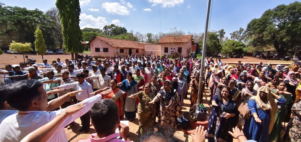 ರವಿವಾರ ದಿನಾಂಕ 05/04/2026 ರಂದು ಪ್ರಥಮ ಹಂತದ ಮೂರು ದಿನಗಳ ತರಬೇತಿ ಅಂತ್ಯವಾದ ನಂತರ ತರಬೇತಿ ಪಡೆದ ಸುಮಾರು 350 ಗಣತಿದಾರರಿಗೆ ಸೇವಾಭಾವ ಪ್ರತಿಜ್ಞೆಯನ್ನು ಬೋಧಿಸಿದ ಅಧಿಕಾರಿಗಳು, “ಜನಗಣತಿ ಕಾರ್ಯಕ್ಕೆ ನಾನು ನೇಮಕವಾಗಿರುವದಕ್ಕೆ ಹೆಮ್ಮೆ ಪಡುತ್ತಾ, 2027ರ ಜನಗಣತಿ ಕಾರ್ಯವನ್ನು ಶೃದ್ದಾಪೂರ್ವಕವಾಗಿ, ಪ್ರಾಮಾಣಿಕವಾಗಿ, ಭಕ್ತಿ ಹಾಗೂ ನಿಷ್ಠೆಯಿಂದ ನಿರ್ವಹಿಸುತ್ತೇನೆಂದು ತಮ್ಮೆಲ್ಲರ ಸಮ್ಮುಖದಲ್ಲಿ ಸೇವಾಭಾವ ಪ್ರತಿಜ್ಞೆಯನ್ನು ಸ್ವೀಕರಿಸುತ್ತಿದ್ದೇನೆ” ಎಂದು ಪ್ರತಿಜ್ಞಾ ವಿಧಿಯನ್ನು ಬೋದಿಸಿದರು.