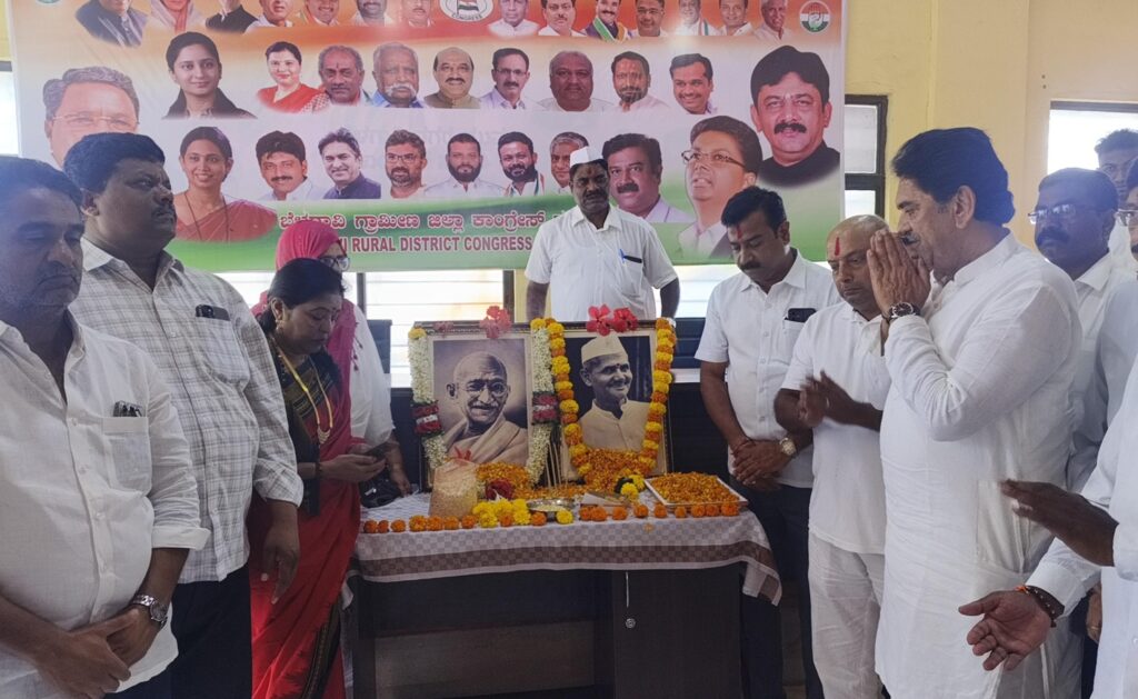 ಗುರುವಾರ ದಿನಾಂಕ 02/10/2025ರಂದು ನಗರದ ಕಾಂಗ್ರೆಸ್ ಭವನದಲ್ಲಿ ಗಾಂಧಿ ಜಯಂತಿಯ ನಿಮಿತ್ತ ಮಹಾತ್ಮ ಗಾಂಧಿ ಹಾಗೂ ಲಾಲ ಬಹದ್ದೂರ ಶಾಸ್ತ್ರಿ ಅವರ ಭಾವಚಿತ್ರಕ್ಕೆ ಪೂಜೆ ಸಲ್ಲಿಸಿ ಮಾತನಾಡಿದ ಶಾಸಕರು, ಮಹಾತ್ಮಾ ಗಾಂಧಿಜಿ ಆದಿಯಾಗಿ ಅನೇಕ ಸ್ವಾತಂತ್ರ್ಯ ಹೋರಾಟಗಾರರು ತಮ್ಮ ತ್ಯಾಗ ಬಲಿದಾನಗಳಿಂದ ನಮಗೆ ಉತ್ತಮ ಜೀವನ ನೀಡಿದ್ದಾರೆ, ಅವರು ಹಾಕಿಕೊಟ್ಟ ಉತ್ತಮ ದಾರಿಯಲ್ಲಿ ನಾವೆಲ್ಲಾ ಸಾಗಬೇಕು ಹೊರತು ಹಿಂಸಾ ಮಾರ್ಗದಲ್ಲಿ ನಡೆಯಬಾರದು ಎಂದಿದ್ದಾರೆ.