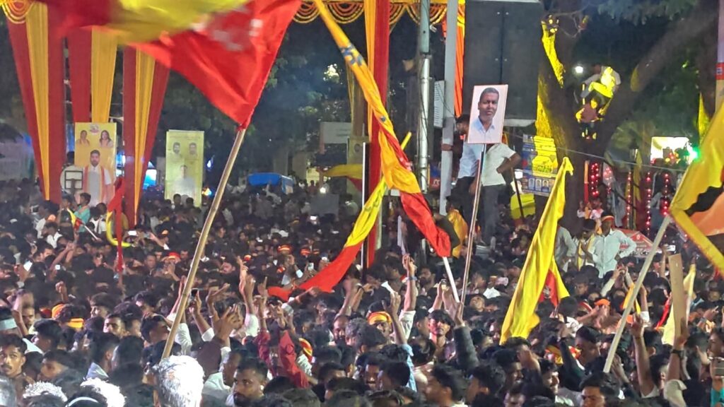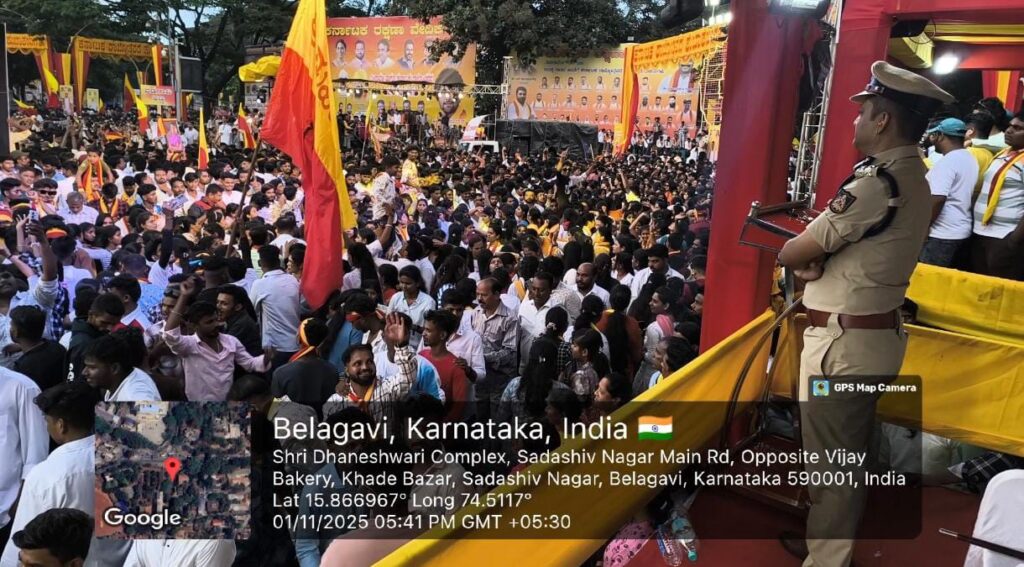 ಬೆಳಗಾವಿ : ಶುಕ್ರವಾರ ದಿನಾಂಕ 31/10/2025ರ ರಾತ್ರಿಯಿಂದಲೇ ಶುರುವಾದ ರಾಜ್ಯೋತ್ಸವದ ಹಬ್ಬ ಶನಿವಾರ ರಾತ್ರಿವರೆಗೂ ಮುಂದುವರೆದಿದ್ದು, ಕನ್ನಡಾಂಬೆಯ, ಕನ್ನಡತನದ ಗುಣಗಾನದೊಂದಿಗೆ, ಬೆಳಗಾವಿ ನಗರವನ್ನೆಲ್ಲ ಅರಿಶಿನ ಕುಂಕುಮದಲ್ಲಿ ಸಿಂಗರಿಸಿದಂತೆ, ಕನ್ನಡದ ಕಹಳೆಯನ್ನು ಬಾನೆತ್ತರಕೆ ಸಾಗುವಂತೆ ಮಾಡಿದೆ..